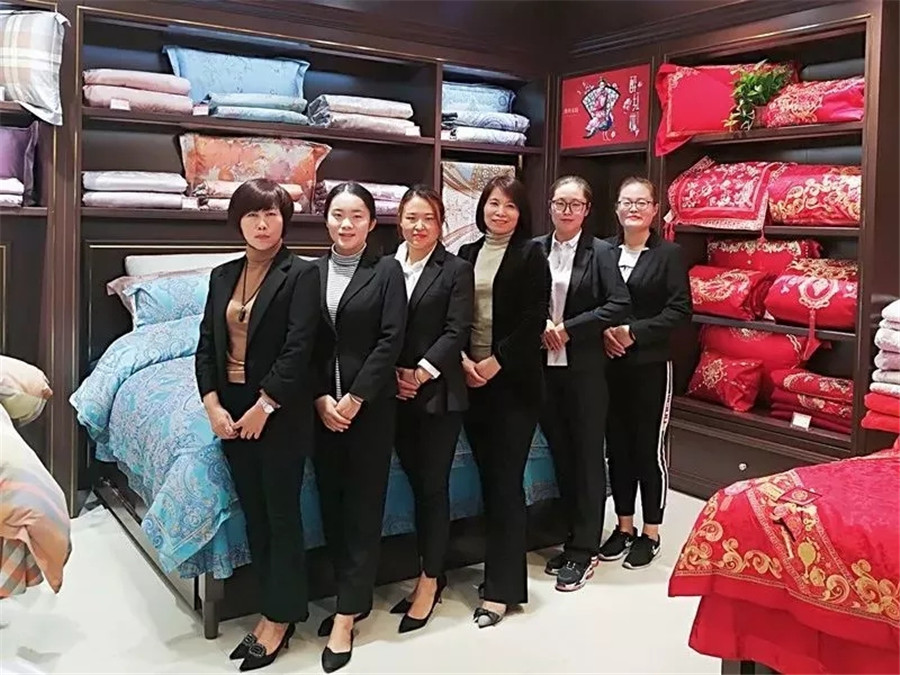 賈:創(chuàng)業(yè)確實(shí)蠻辛苦的,我在做家紡以前從事的是酒店行業(yè),這個(gè)跟家紡?fù)耆莾蓚€(gè)不同的領(lǐng)域,所以在剛自主經(jīng)營長葛專賣店的時(shí)候也遇到了不少的困難,比如導(dǎo)購的培訓(xùn)、營銷活動(dòng)的策劃及備貨等等,好在總公司給予了很大的支持與幫助。特別是近兩年,公司更加注重對(duì)我們加盟商的支持力度。每次活動(dòng)前期,公司都會(huì)派業(yè)務(wù)督導(dǎo)過來和我一起策劃,教我分析總結(jié)合理備貨。前段時(shí)間,長葛一峰城市廣場(chǎng)專柜擴(kuò)店重裝采用了總部新的店鋪形象,同時(shí),總部還在細(xì)節(jié)處為我進(jìn)行了量身定制,能夠更好地進(jìn)行陳列,讓我以嶄新的姿態(tài)去迎接更高的挑戰(zhàn)。所以總的來說,我非常感謝公司對(duì)我的用心,謝謝!